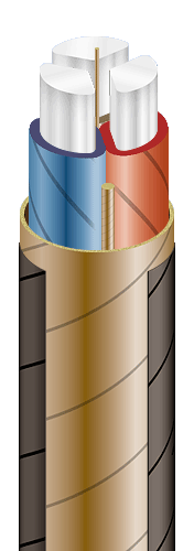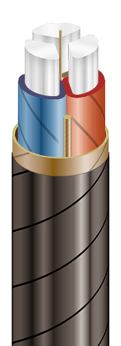 | Кабели силовые с алюминиевыми токопроводящими жилами, с бумажной изоляцией, пропитанной нестекающим изоляционным составом, в алюминиевой оболочке, бронированные стальными лентами |