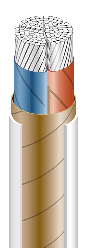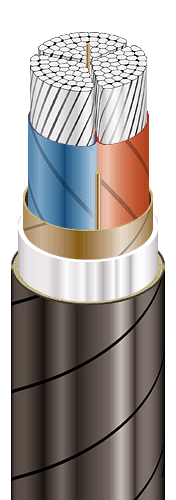 | Кабели силовые с алюминиевыми токопроводящими жилами, с бумажной пропитанной изоляцией, в алюминиевой оболочке, бронированные стальными лентами, с защитным шлангом из ПВХ пластиката |