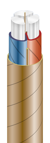| Кабели силовые с алюминиевыми токопроводящими жилами, с бумажной пропитанной изоляцией, в алюминиевой оболочке, бронированные стальными лентами, с защитным шлангом из ПВХ пластиката |