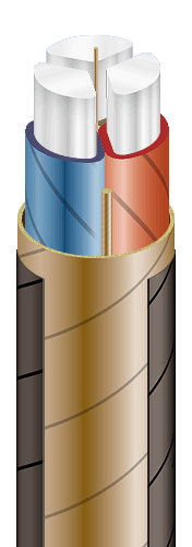 | Кабели силовые с алюминиевыми токопроводящими жилами, с бумажной изоляцией, пропитанной нестекающим изоляционным составом, в свинцовой оболочке, с защитным шлангом из ПВХ пластиката пониженной горючести |