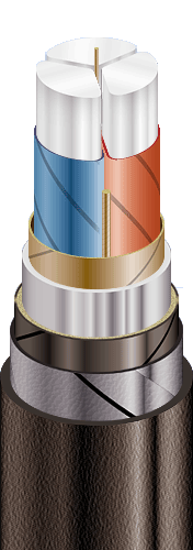 | Power cables with aluminium conductors, with impregnated paper insulation, lead-sheathed, steel-tape armoured, with PVC-compound protection hose |
