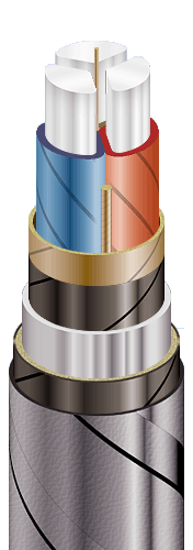 | Power cables with aluminium conductors, with impregnated paper insulation, lead-sheathed, steel-tape armoured, with PVC-compound protection hose |