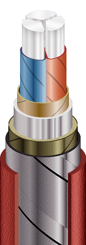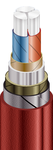 | Кабели силовые с алюминиевыми токопроводящими жилами, с бумажной пропитанной изоляцией, в свинцовой оболочке, бронированные стальными лентами, с защитным шлангом из ПВХ пластиката пониженной горючести |