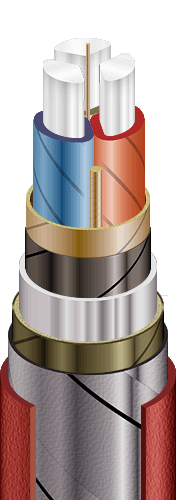 | Кабели силовые с алюминиевыми токопроводящими жилами, с бумажной изоляцией, пропитанной нестекающим изоляционным составом, в свинцовой оболочке, бронированные стальными лентами, с защитным шлангом из ПВХ пластиката пониженной горючести |