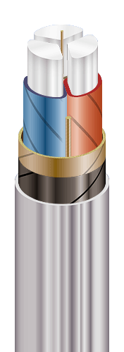 | Кабели силовые с алюминиевыми токопроводящими жилами, с бумажной пропитанной изоляцией, в свинцовой оболочке, бронированные стальными лентами, с защитным шлангом из ПВХ пластиката пониженной горючести |