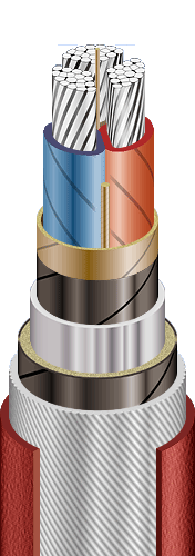| Power cables with aluminium conductors, with non-draining impregnated paper insulation, lead-sheathed, steel-wire armoured, with low-flammable PVC-compound protection hose |