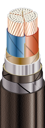 | Кабели силовые с медными токопроводящими жилами, с бумажной пропитанной изоляцией, в свинцовой оболочке, бронированные стальными лентами, с защитным шлангом из ПВХ пластиката |
