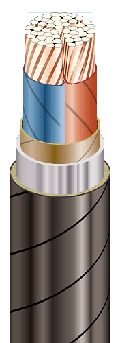 | Кабели силовые с медными токопроводящими жилами, с бумажной пропитанной изоляцией, в свинцовой оболочке, бронированные стальными лентами, с защитным шлангом из ПВХ пластиката |