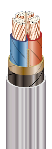 | Кабели силовые с медными токопроводящими жилами, с бумажной пропитанной изоляцией, в свинцовой оболочке, бронированные стальными лентами, с защитным шлангом из ПВХ пластиката пониженной горючести |