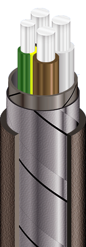 | Возможно изготовление кабеля с неоцинкованной броней, покрытой слоем битума и ПЭТ пленкой |