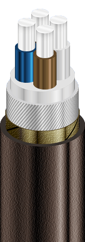 | Кабели силовые с алюминиевыми ТПЖ, с изоляцией из ПВХ пластиката, с заполнением промежутков между жилами, бронированные круглой стальной проволокой, с наружной оболочкой из ПВХ пластиката |