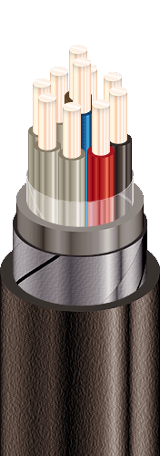 | Кабелі контрольні з мідними СПЖ, з ізоляцією з ПВХ пластикату, броньовані двома оцинкованими сталевими стрічками, із захисним шлангом з ПВХ пластикату, що не розповсюджують горіння |