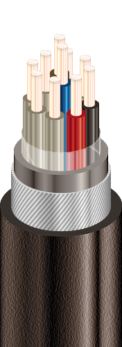 | Кабелі контрольні з мідними СПЖ, з ізоляцією з ПВХ пластикату, броньовані круглим сталевим дротом, із захисним шлангом з ПВХ пластикату зниженої горючості |